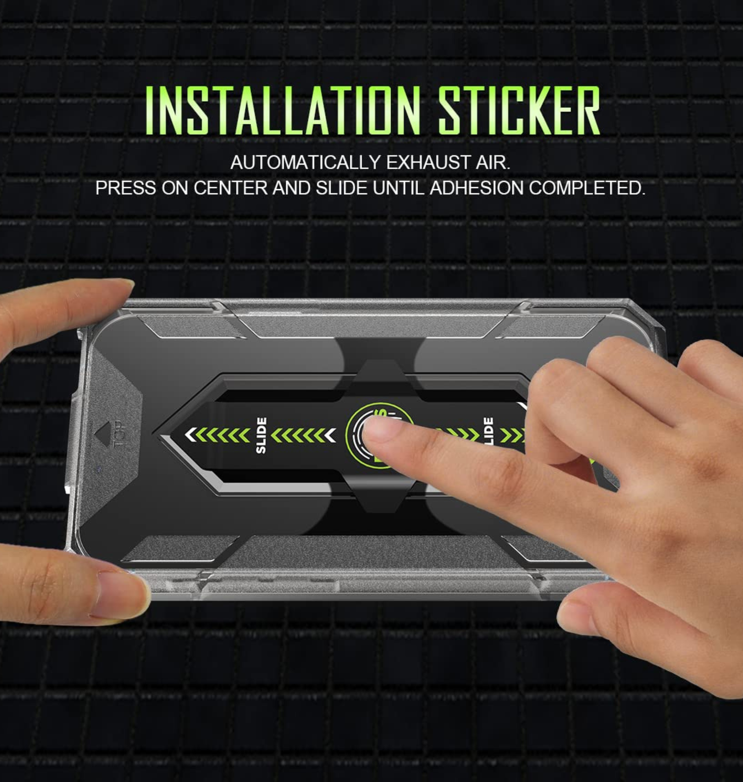 3) Put the tray on the phone, press on the sticker center, wait for 15s and slide.